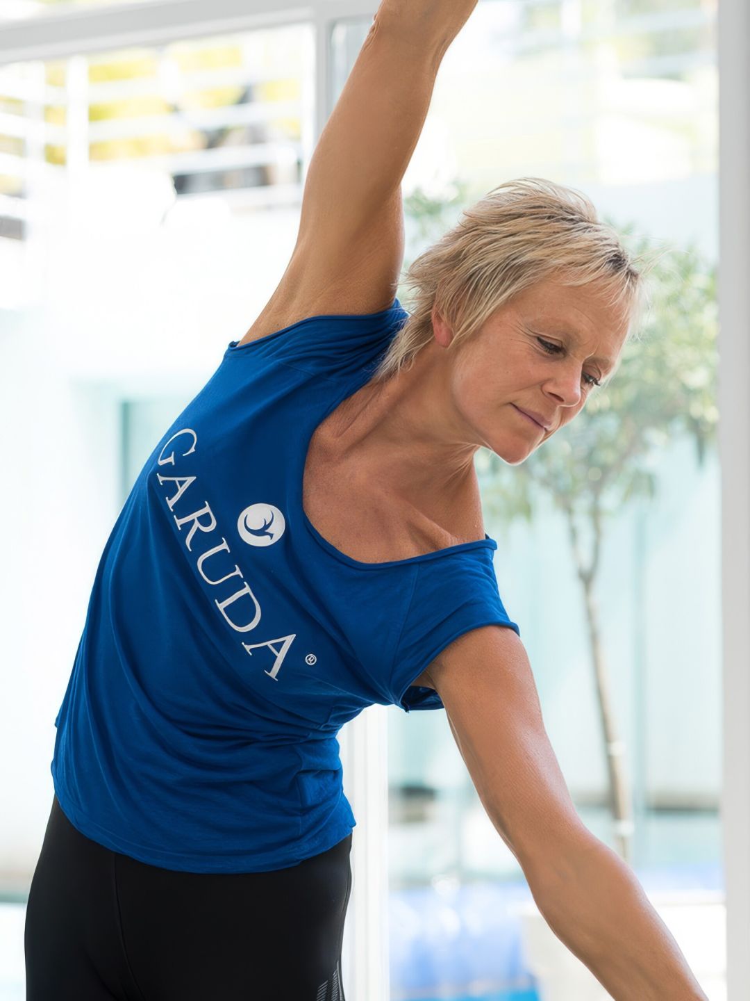 Née en Suède, elle a créé FIT STUDIO en 1990 à Lyon pour faire prendre conscience au public de l’importance du bien-être pour le corps et l’esprit. Rapidement sollicitée par les professionnels de Fitness pour former leurs instructeurs, pendant 15 ans Eva va parcourir le monde pour dispenser ses formations, mais sa passion reste la transmission de son savoir à une clientèle quotidienne. Elle décide en 2005 de poser ses valises à Ramatuelle, où elle dispense ses cours privés ou même collectifs de Pilates, Garuda et Fitness.